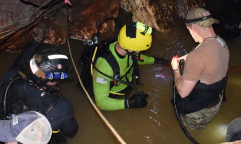 Satu pasukan yang mengumpulkan 13 pakar penyelam gua dari Amerika Syarikat, Australia, China dan Eropah sedang membantu lima anggota tentera laut Thai dalam misi membawa keluar 12 orang remaja dan jurulatihnya melalui laluan gua Tham Luang yang dibanjiri air dan sempit itu.